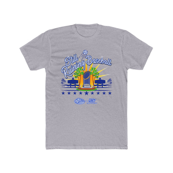 This lightweight cotton crew brings a wink and a laugh to every baseball day. The Los Angeles–themed “Still Ruining Baseball” graphic sits confidently on a clean, classic silhouette — worn by fans who love the game and don’t take themselves too seriously. It drapes lightly, holds its shape through innings and road trips, and the soft ribbed collar and shoulder tape keep the tee feeling put-together after repeat wear. Slip it on for a local doubleheader, a backyard barbecue after the game, or when you’re meeting friends downtown for a post-game rant. The understated fit makes it easy to layer under a flannel or wear solo with a cap, letting the design do the talking while the tee stays comfortable and dependable.